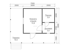 Классический проект 7 бани с террасой (7х5,5 м.) имеет оправданную, проверенную временем конфигурацию и оптимальное расположение внутренних помещений.