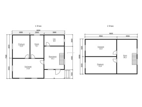 | Лестница (при наличии второго этажа) | Деревянная, одно или двухмаршевая. Перила- заводские резные, балясины- заводские точеные, устанавливаются стартовые точёные столбы. Ступени 40х200 мм. Тетива лестницы- 90х140 мм. | Отсутствует. |
