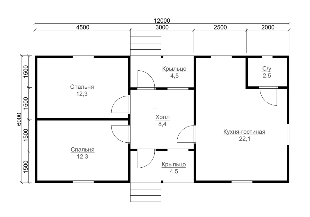 Проект дома 87 размером 6х12 м. и общей площадью 57.6 кв.м. подойдет для комфортного проживания в любой климатической зоне России.