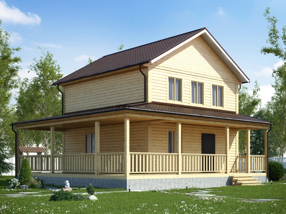 Если Вы мечтаете соединить простоту и неординарность при строительстве дома, остановите свой выбор проекте дома из профилированного бруса с большой террасой.