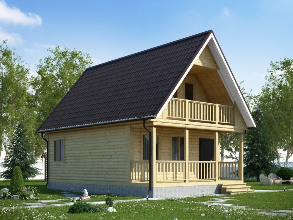 Если Вы мечтаете соединить простоту и неординарность при строительстве дома, остановите свой выбор проекте дома из профилированного бруса с балконом и маленькой террасой.