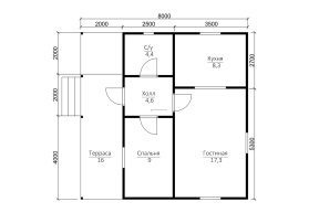 Проект дома 70 размером 8х8 м. и общей площадью 44 кв.м. подойдет для комфортного проживания в любой климатической зоне России.