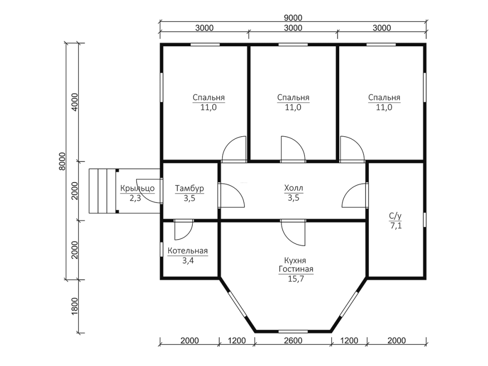 Проект дома 52 размером 8х9 м. и общей площадью 74.7 кв.м. подойдет для комфортного проживания в любой климатической зоне России.