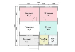 Проект дома 137 размером 8х8 м. и общей площадью 58 кв.м. подойдет для комфортного проживания в любой климатической зоне России.