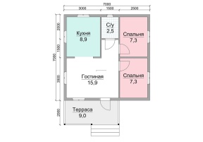 Проект дома 135 размером 7х7 м. и общей площадью 44 кв.м. подойдет для комфортного проживания в любой климатической зоне России.