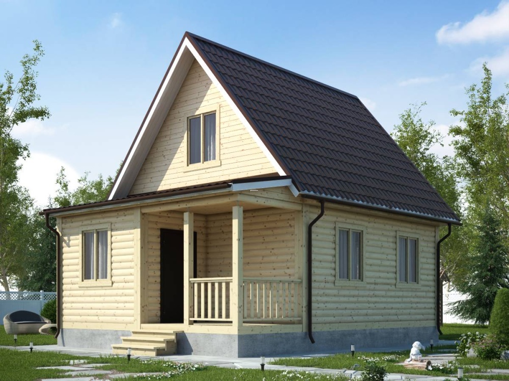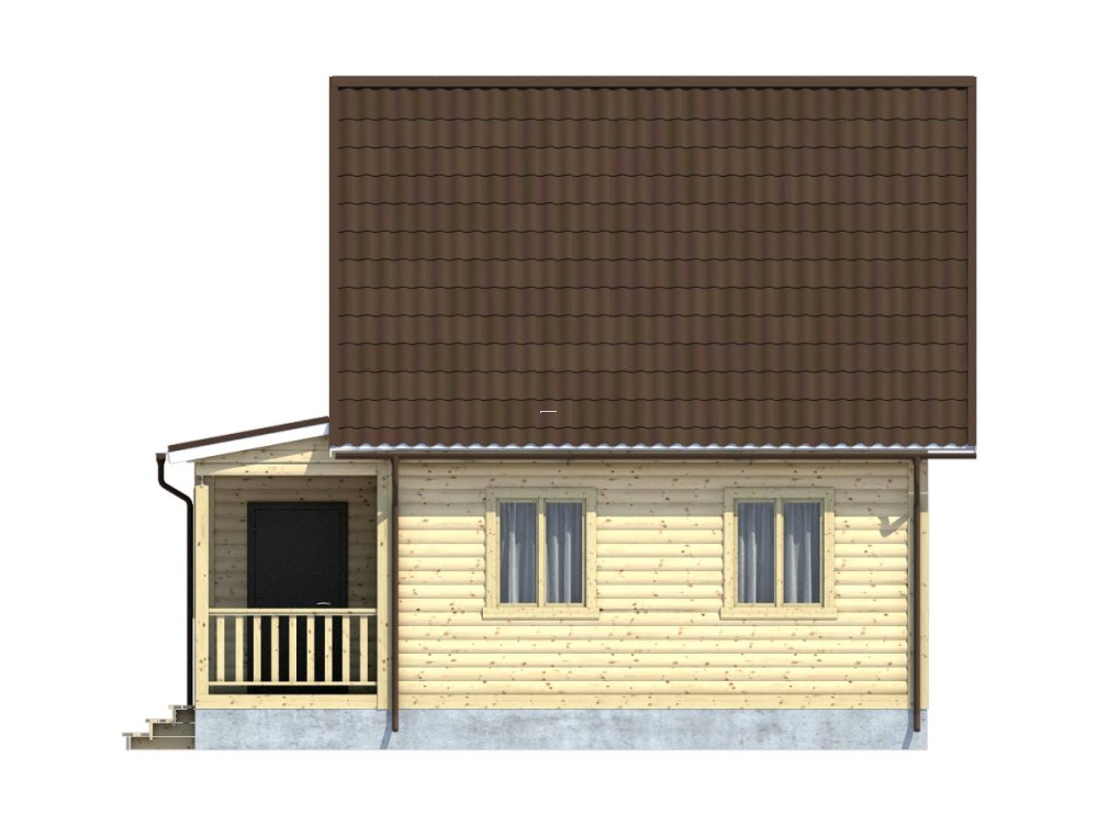 полутораэтажный дом с двускатной подарит долгие вечера любителям загородного отдыха и единения с природой. Крыша из ондулина любой из трех предложенных расцветок надежно защищает дом от сюрпризов погоды, не пропуская влагу и не накапливая снег.