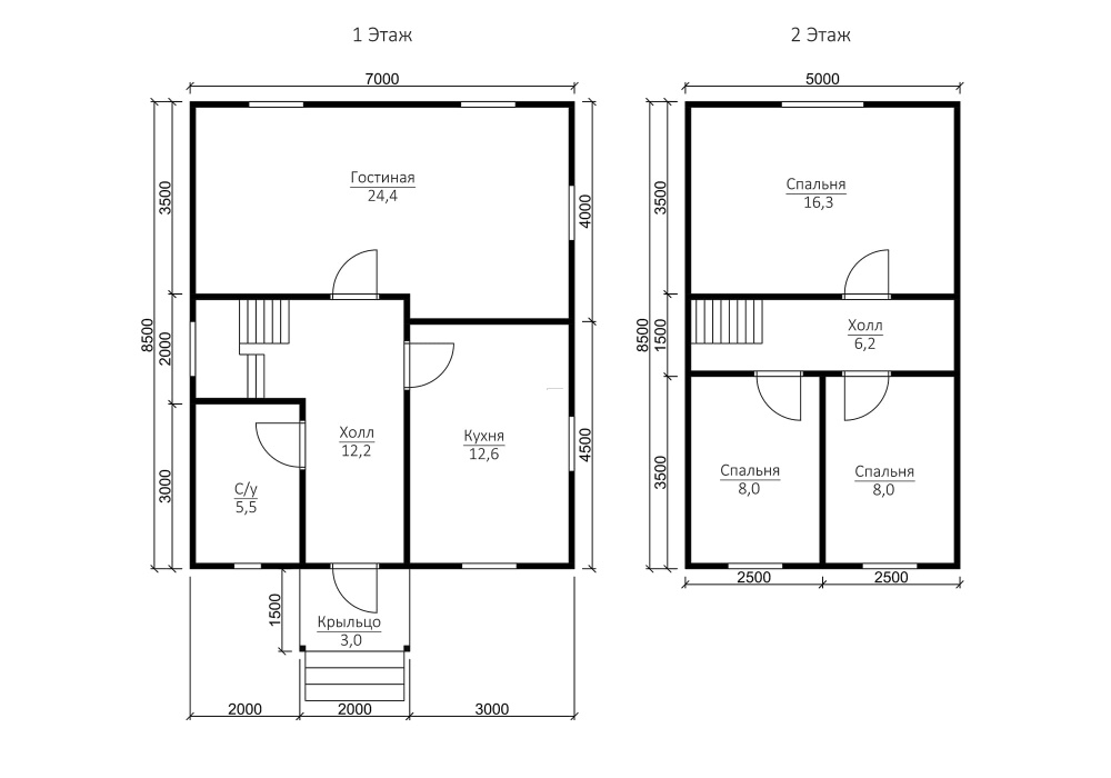 Самые востребованные размеры коттеджей и домов на данный момент: мини - до 50м2 (в большинстве случаев, 1-этажные дома); компактные - от 70м2 до 100 квадратов (обычно двухэтажные); большие дома - от 150 кв. М и свыше.